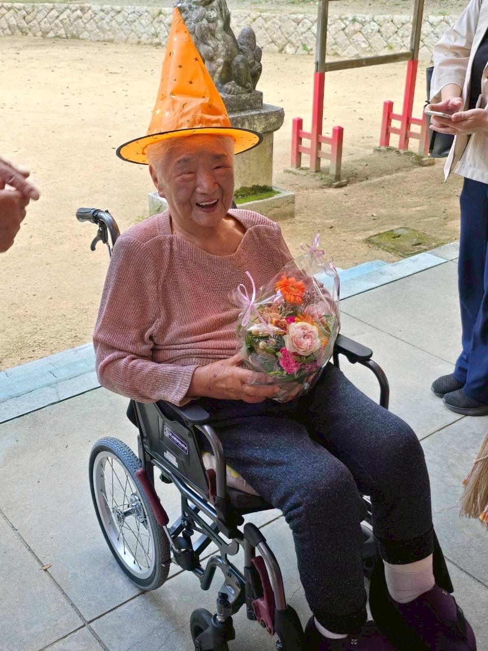 98歳のお誕生日に彼女は神社にお参りに行った。
